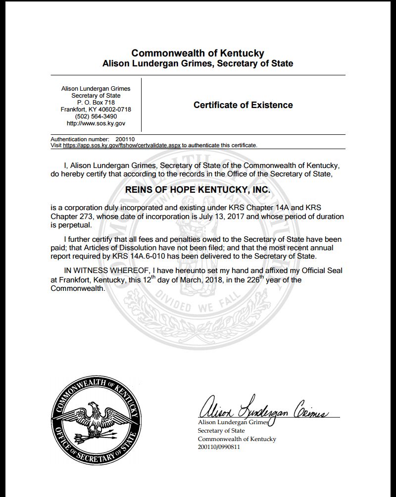 Reins of Hope Kentucky, Inc. provides non-clinical, trauma-informed equine-assisted programs. Services are not a substitute for licensed medical or mental health care.